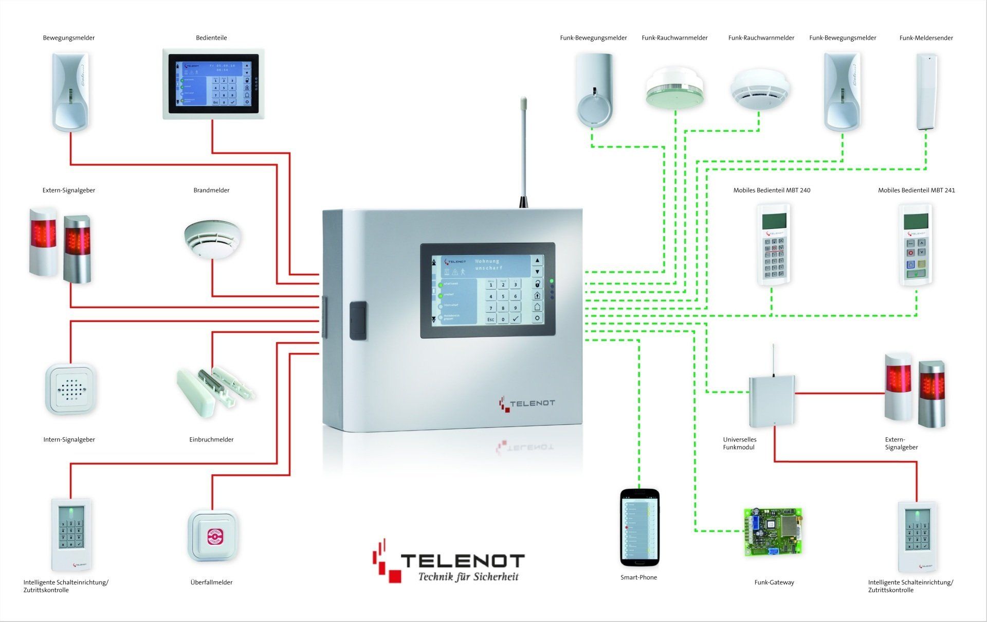 Eine Brandwarnanlage bietet Ihnen höchste Sicherheit und Flexibilität für alle Sicherheits-anforderungen im Alt- und Neubau und ist intuitiv bedienbar. Unterschiedliche Meldertypen in Draht- oder Funktechnik ermöglichen eine leichte und flexible Integration - auch in Bestandsbauten.